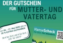 Als besondere Aktion zum anstehenden Muttertag und Vatertag werden vom 3. bis zum 11. Mai 2024 in Attendorn auf alle neu erworbenen HanseSchecks 20% Extraguthaben aufgeladen.