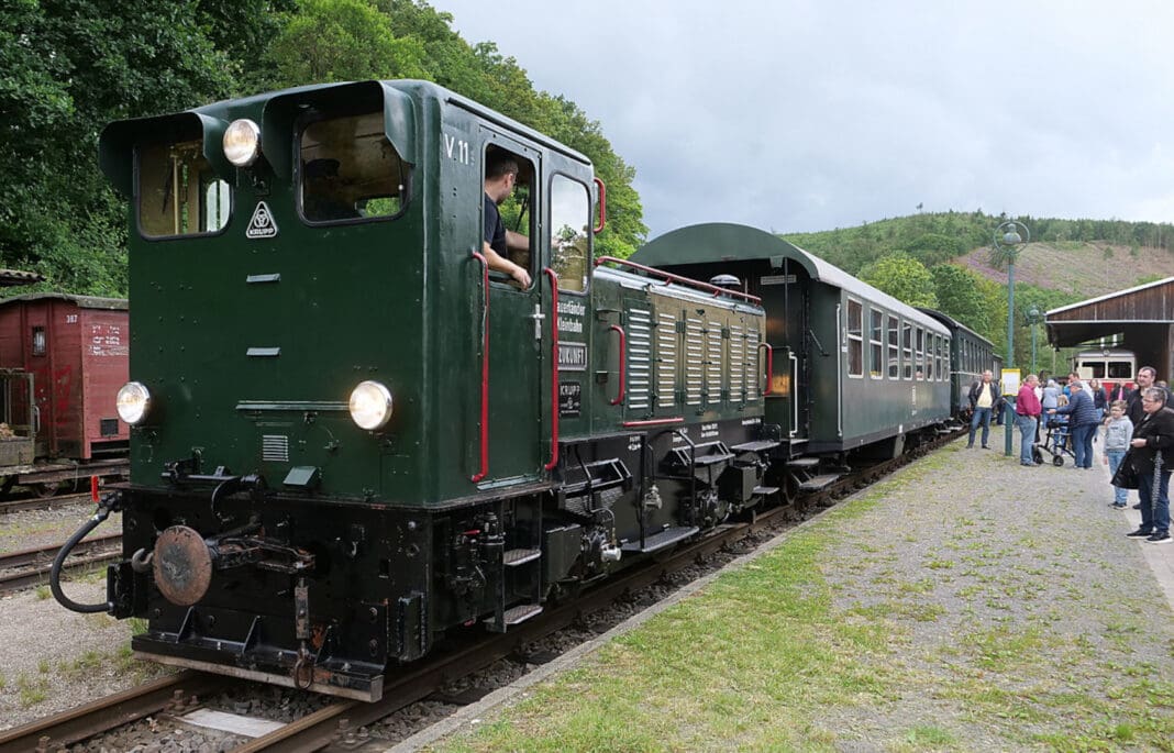 Zum Oldtimertag rollen die historischen Züge ab 58849 Herscheid-Hüinghausen das schöne Elsetal hinunter, laden ein zur Mitfahrt und geben zusammen mit dem historischen Blech ein grandioses Bild ab. Der Kleinbahn-Museumszug absolviert am Sonntag sechs Fahrten.