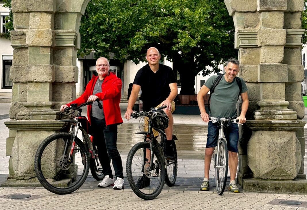 Unter den Zuschauern waren zahlreiche Zeitzeugen, darunter viele, die als Soldaten in der Sauerlandkaserne in Oedingen gedient hatten, so wie Antonius Klein aus Altenwenden. Er war 1989 zum Wehrdienst in Oedingen und urteilt heute rückblickend: „Das war ein notwendiger Dienst, den ich dort geleistet habe.“ Andere Zuschauer waren damals dort angestellt, haben die Zeit als Anwohner erlebt oder standen als Friedensaktivisten vor den Kasernentoren. Im Podiumsgespräch unter Beteiligung von Filmemacher Harald Sontowski teilten einige ihre Erinnerungen mit: August Freimuth, ehemals Offizier am Standort Oedingen und hier heimisch geworden, Oliver Breiting, Ortsheimatpfleger von Oedingen, dessen Vater ebenfalls als Offizier Berufssoldat in der Sauerlandkaserne war, und Engelbert Prevorcic aus Hachen, Aktivist in der Friedensbewegung in Lennestadt und Organisator der „Sauerländer Friedens-Fahrrad-Demo“ am 23. Mai 1981 (Foto). Nach der Veranstaltung tauschten sich die Teilnehmenden noch lange aus. Ein Dankeschön ging abschließend an Familie Cordes, die diesen Abend in ihrem Kino möglich machte.