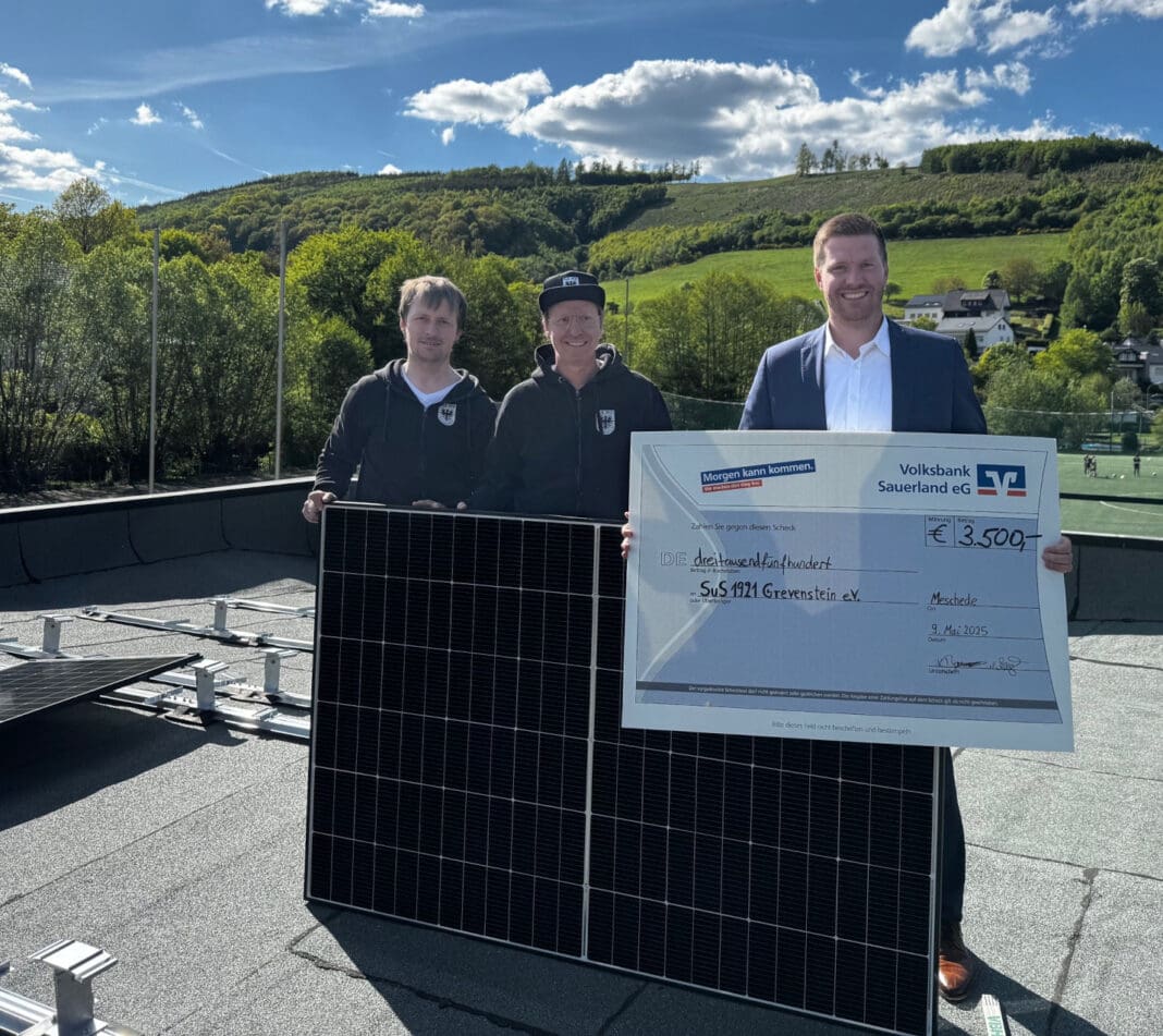 Ein erfolgreich gefördertes Projekt zeigt, wie es geht: Der SuS 1921 Grevenstein e.V. erhält aus der letzten Förderrunde der Zukunftsoffensive 3.500 Euro zur Installation einer Photovoltaikanlage auf dem Vereinsheim. Mit dieser Investition möchte der Verein sowohl seine Stromkosten dauerhaft senken als auch einen aktiven Beitrag zum Umwelt- und Klimaschutz leisten.