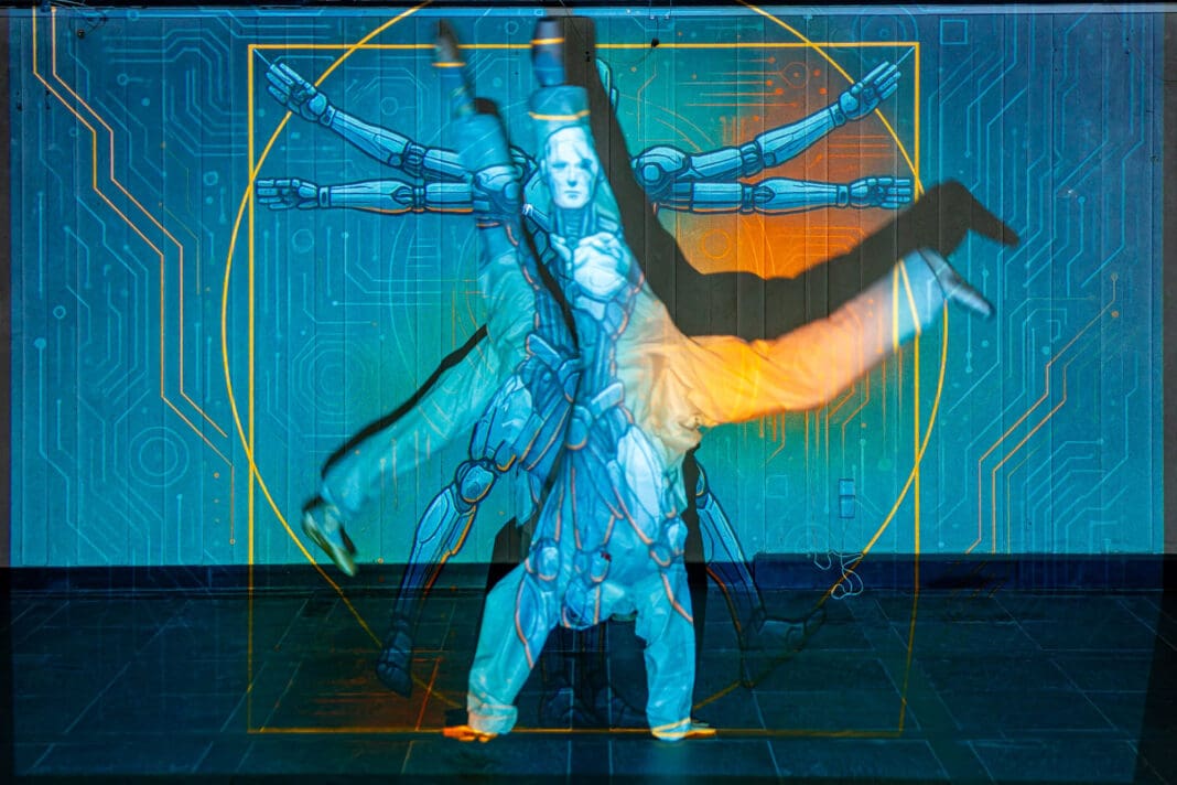 Bei diesem Projekt ging es um die kreative Auseinandersetzung mit dem Themenfeld „Kunst und künstliche Intelligenz“ mit Lichtkunst, Projektionen, Tanz, Theater, Foto und Video.
