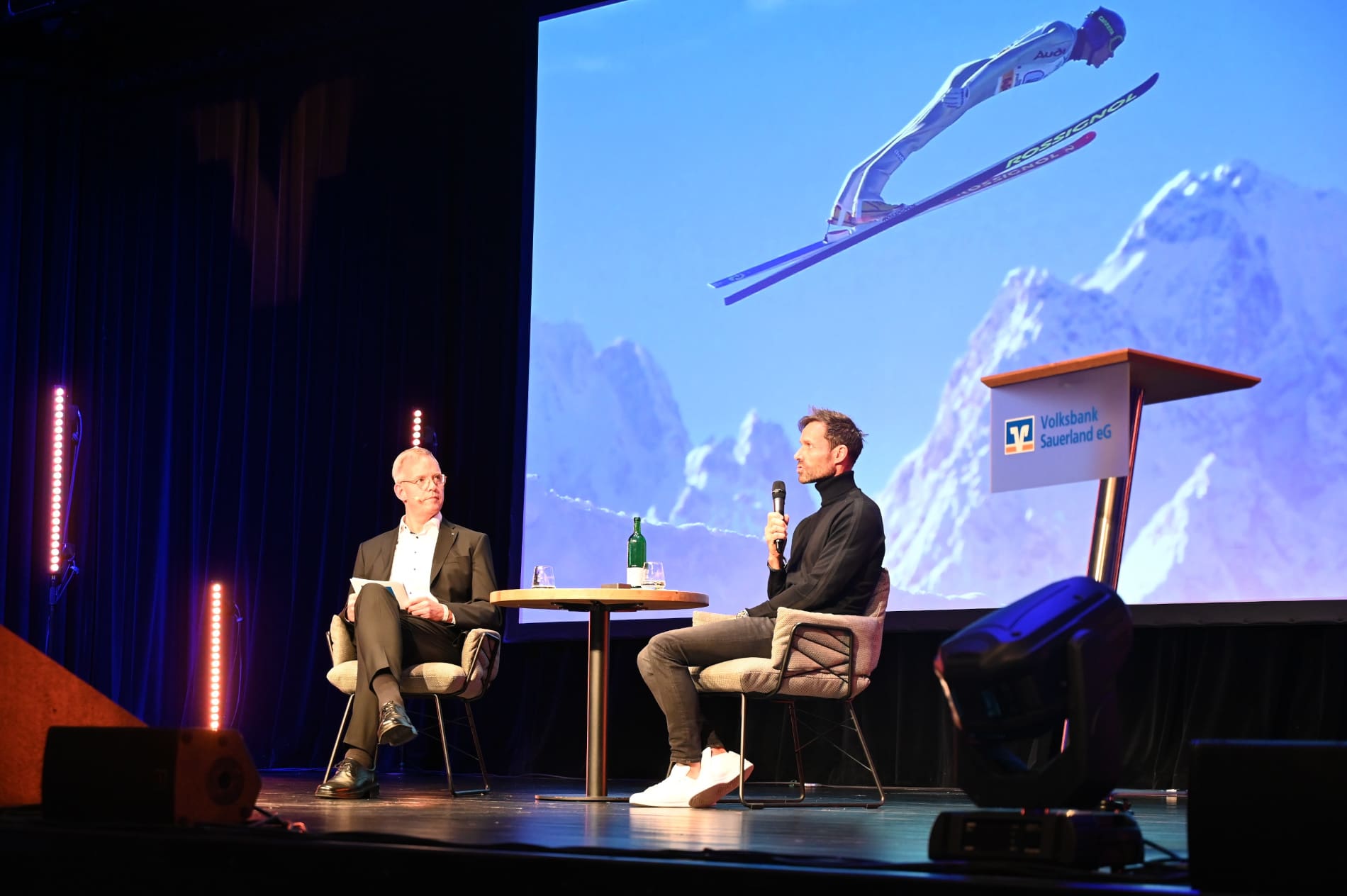„Mit dem Volksbank Dialog schaffen wir einen Rahmen, in dem wir über das sprechen, was uns im Leben wirklich bewegt – über Leistung, Gesundheit und Balance“, eröffnete Bernd Griese den Abend. „Sven Hannawald steht für beides: für herausragende Erfolge, aber auch für den Mut, über Schwächen zu sprechen und neue Wege zu gehen.“