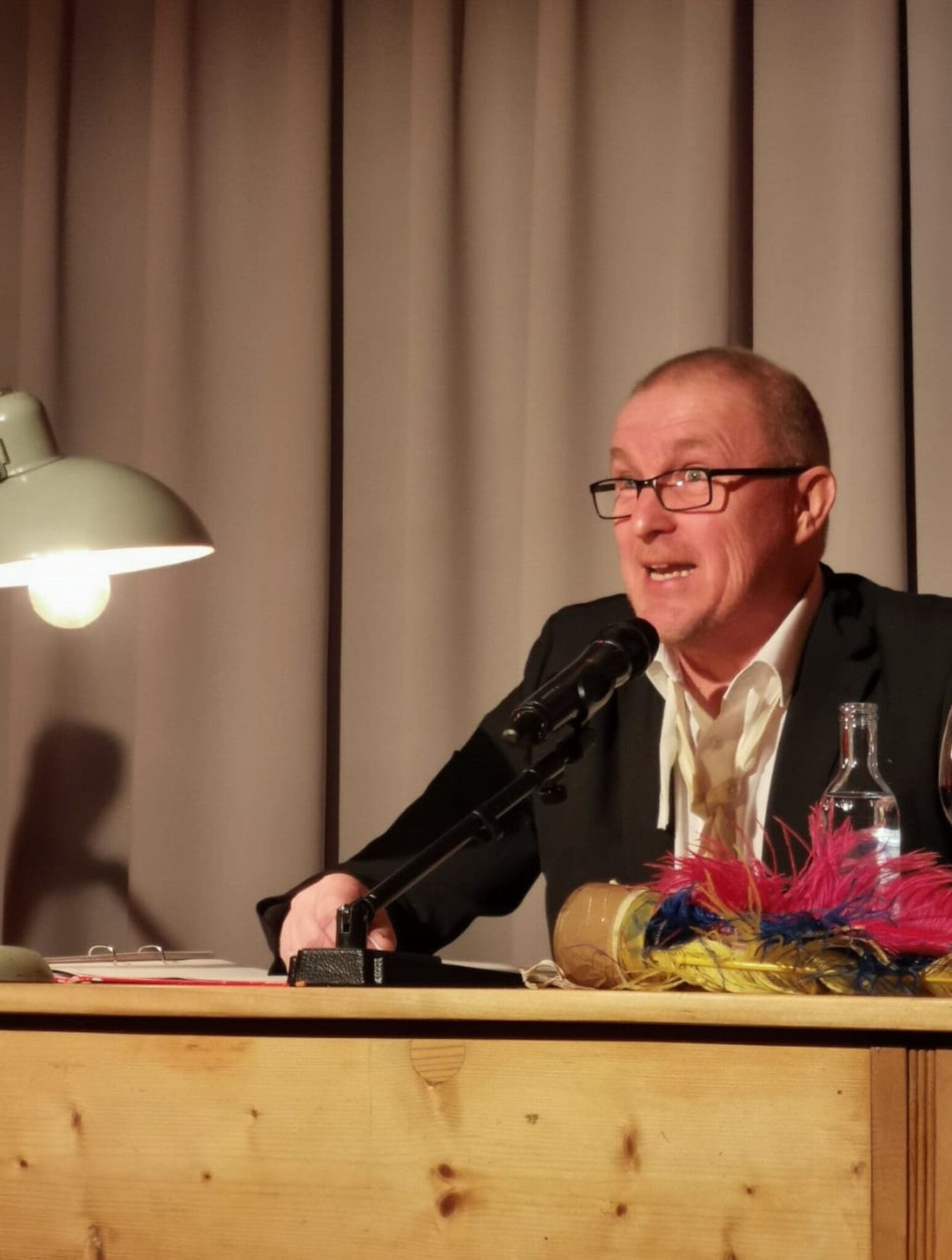 Über 30 Jahre lang treibt Karl Kappes, selbsternannter Ehrenpräsident des fiktiven Karnevals- und Heimatvereins „Freudentränen v.e.“ sein Unwesen im Heldener Karneval sowie bei zahlreichen Vereinsfesten und privaten Feiern. Seit 2018 stellt er sich regelmäßig einen bunten Teller unterhaltsamer Weihnachtsgeschichten zusammen, die er lesend und spielend zum Besten gibt. Wer den schrägen Vereinsvogel kennt, weiß, dass es dabei weiß Gott nicht nur besinnlich zugeht.