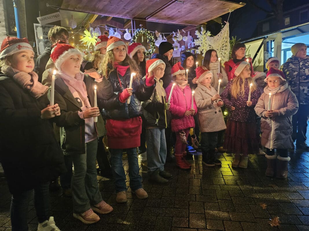 Mit angezündeten Kerzen wurden symbolisch ein Friedenslicht und Weihnachtsgrüße nach Rawicz geschickt.