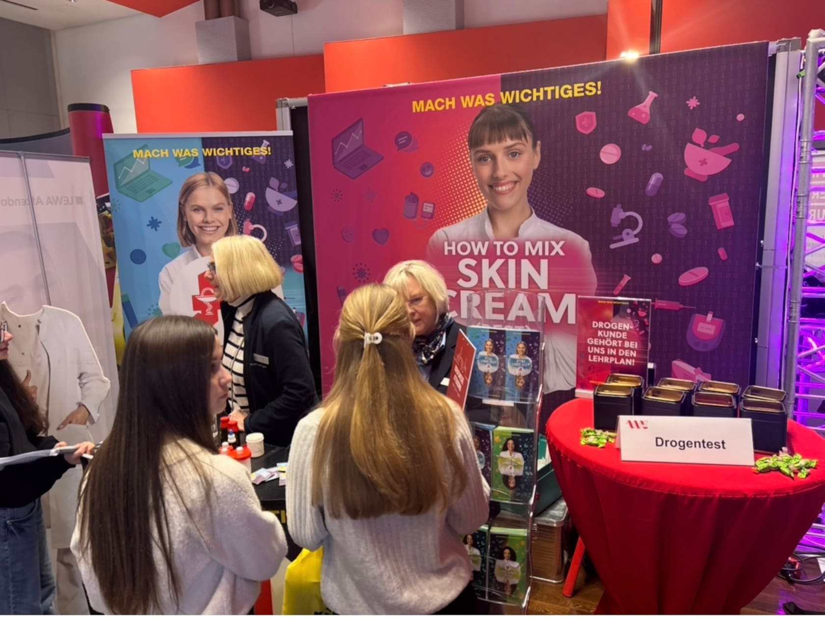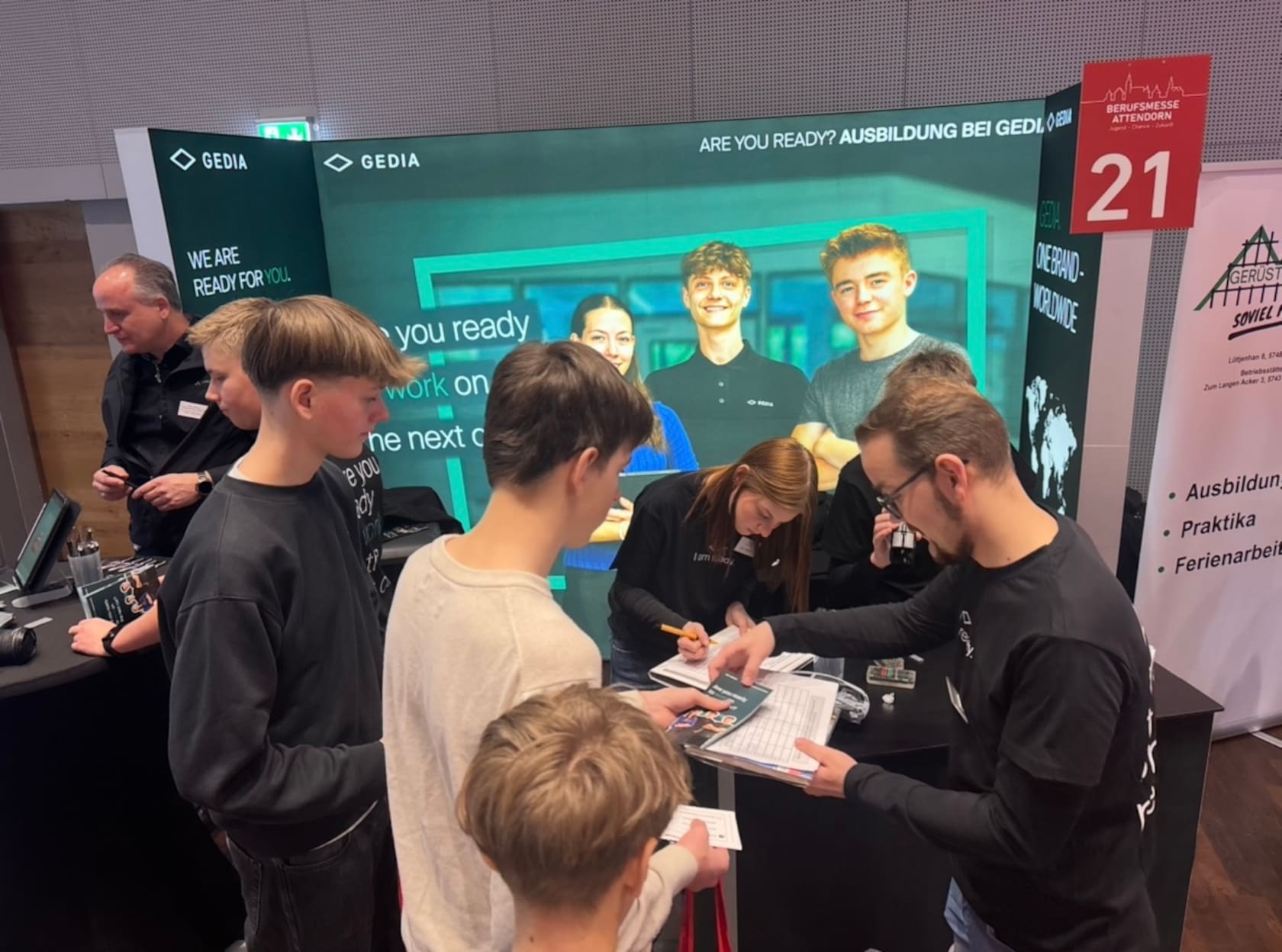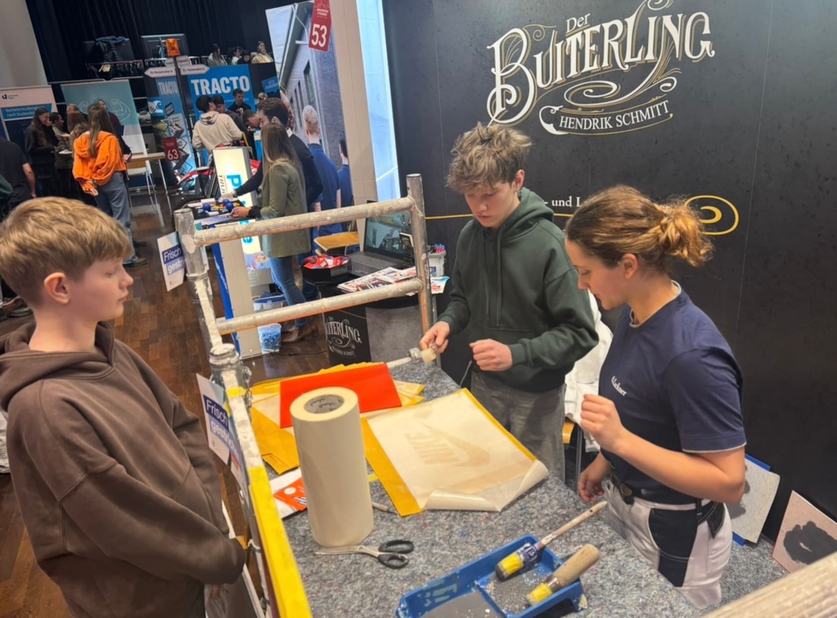 Nach einer wohlverdienten Mittagspause öffnete die Messe ihre Türen für die Öffentlichkeit. Auch am Nachmittag war die Stadthalle sehr gut besucht: Zahlreiche Jugendliche kamen gemeinsam mit Freunden oder ihren Erziehungsberechtigten, um sich über die vielfältigen beruflichen Möglichkeiten nach der Klasse 10 oder dem Abitur zu informieren.